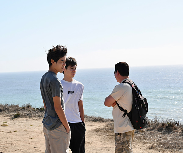 海を眺めながら何やら熱い討論会?