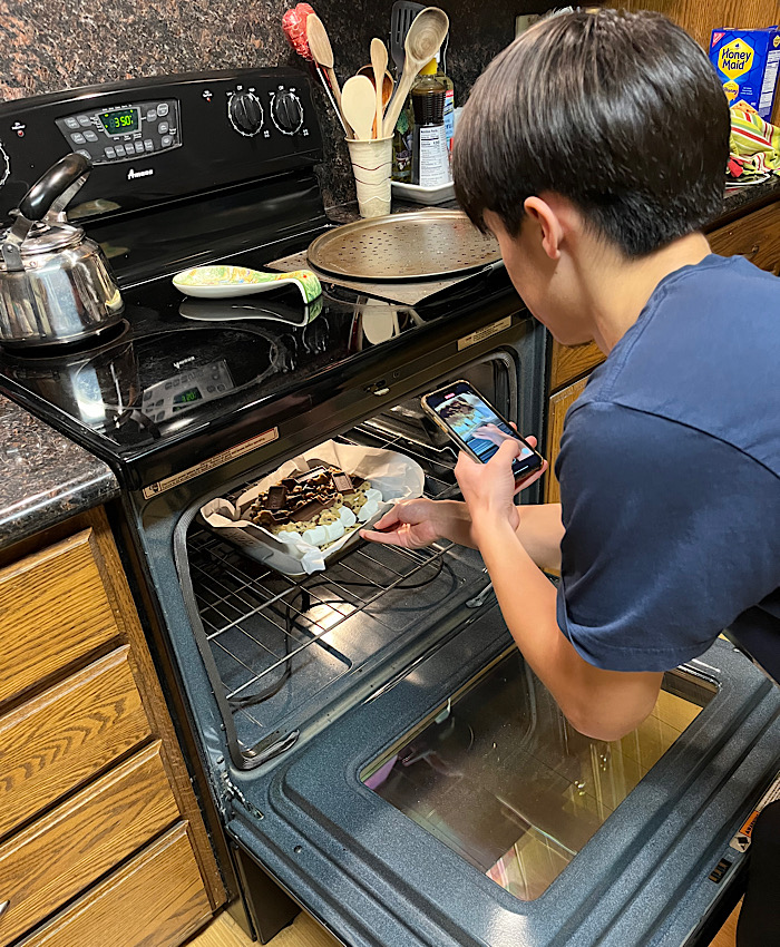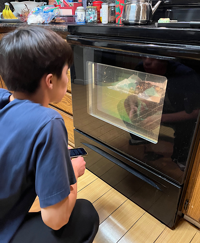 オーブンを覗き込む姿は幼かった頃と同じで
