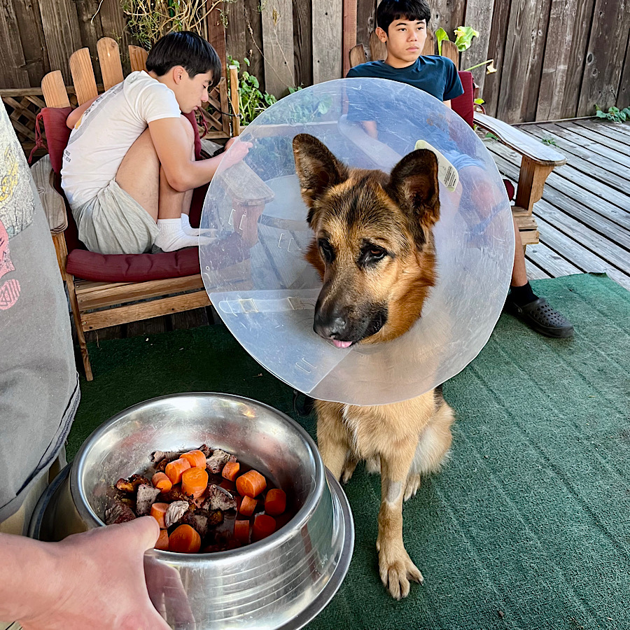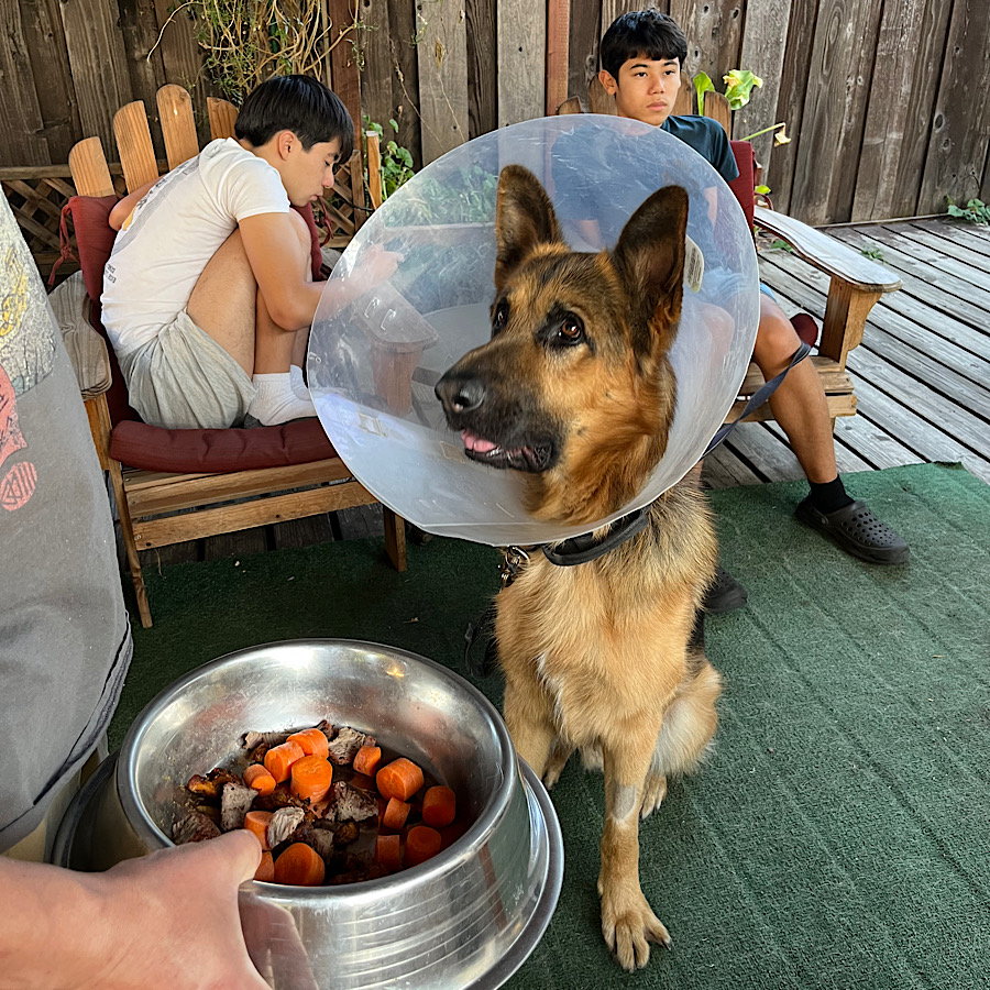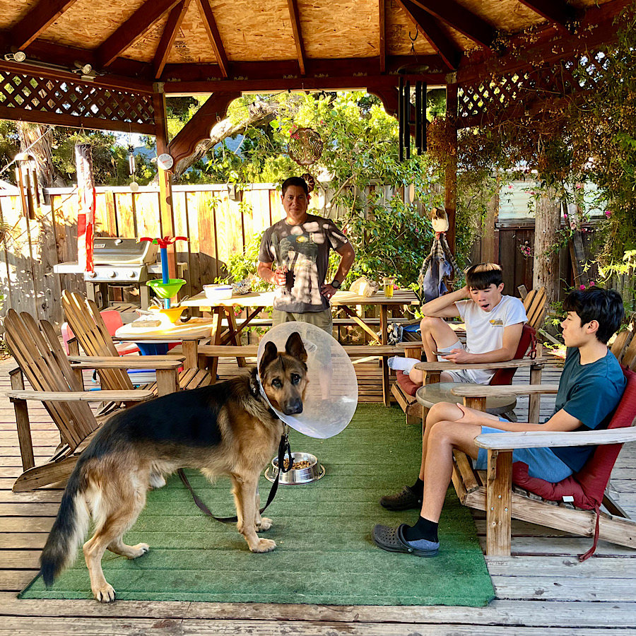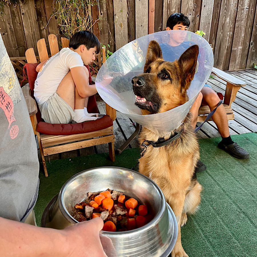Posted in大型犬との暮らし 停留睾丸摘出手術後8日目 Posted by Mika 06/19/2025No Comments 今日は祝日のアメリカ合衆国 息子達は映画を観に行った後 ガゼボでリラックス Aceは 男3人と一緒に居るのが大好きです。 夕食は 息子達だけでなく Aceも大好きなBBQ 今夜はこれかな? と早速チェック中(笑) 食いしん坊なので 早く食べたいのだけれど みんな揃ってのんびり過ごす時間も好きみたい。 さあ お楽しみの夕食タイムです。 まずは 待てのコマンド あの〜 まだですか? もう待てません! とまあこんな感じで 今日も食欲旺盛 元氣いっぱいのAceです。 Mika 北カルフォルニア在住のフォトエッセイストです。 View All Posts Post navigation Previous Post 停留睾丸摘出手術後7日目Next Post停留睾丸摘出手術後9日目