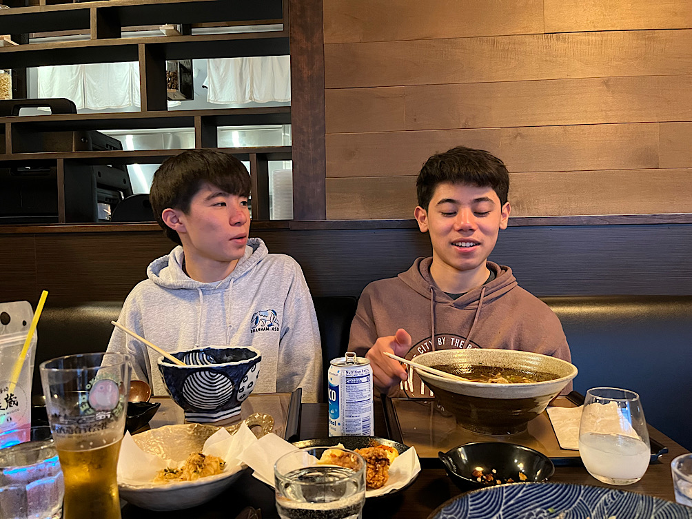 長男坊と旦那さんは豚骨うどん