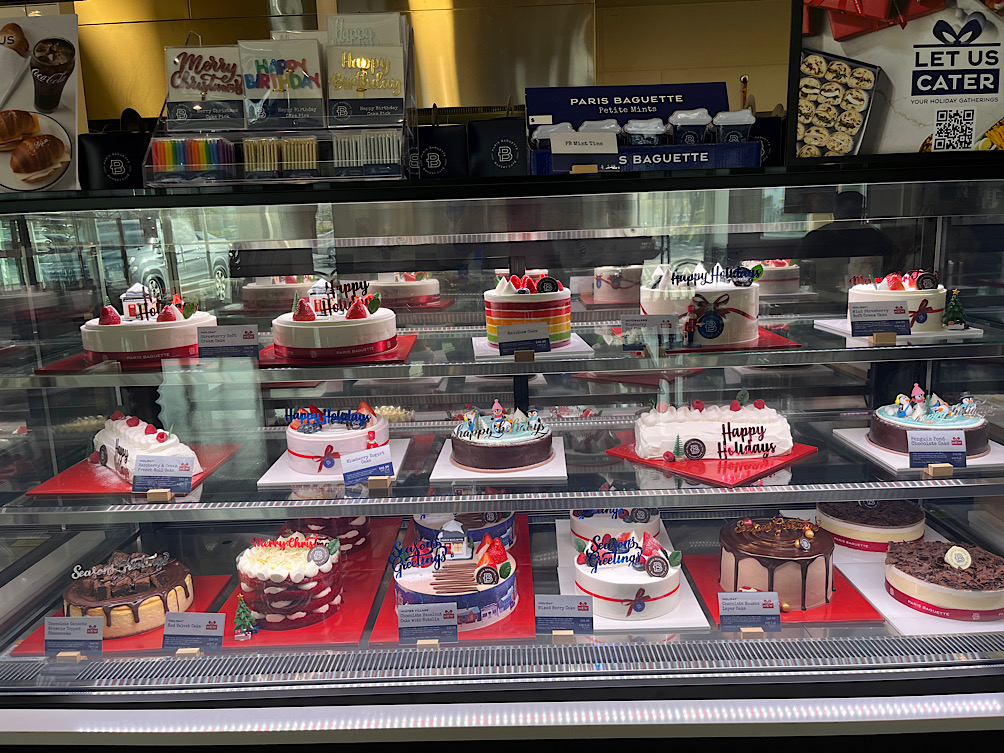 ショーウィンドウに並ぶケーキと睨めっこの私達(苦笑)。